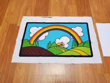 Awesome RARE Vintage Mid Century retro 80's Finlandia Rainbow Scene Fabric! LOOK