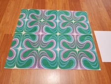Awesome RARE Vintage Mid Century retro 70s grn violet swirl squares fabric! LOOK