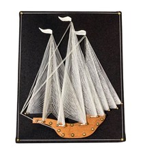 Vintage Mid Century Modern Nautical Boat Ship Schooner String Art Wall Art