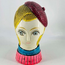 Vintage Mid Century Modern MCM colorful lady head figurine bank