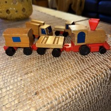 Antique Working Vintage Mattel Train Set 1972 Korea Wooden Set of 3 + 2 Trucks