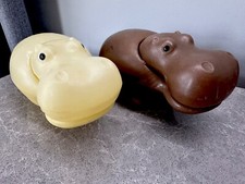 Vintage Set Of 2 Soviet USSR Mid Century Blow Plastic Hippo Dolls Decor Toy