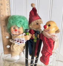 Vintage Clowns 3 Visor Squeeze Clip-On Pencil Topper Pinch Hug Plush 1980's Toys