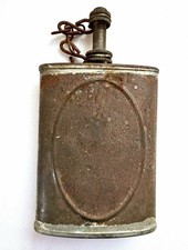 Antique WWI Steel Oil Flask Military Trench Lantern Fuel Primitive Can