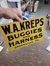 Rare Antique Sign W.A. Kreps Buggies & Harness Greenville Pa Vintage Cardboard