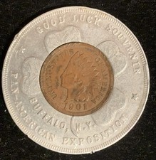 1901 Pan American Exposition Buffalo N.Y. Encased Lucky Indian Head Penny