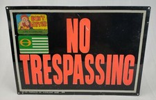 Vintage No Trespassing Sign Metal Advertising Man Cave Decor Gas Oil Tin Can