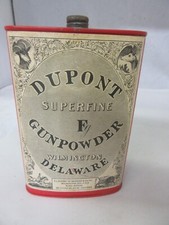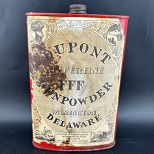 EMPTY ADVERTISING DUPONT SUPERFINE BLACK RIFLE POWDER TIN CAN COLLECTIBLE FFG