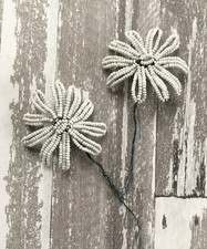Antique Vintage White Beaded Wire Flowers - For One