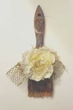 Antique Vintage Paintbrush "Gold Rose". Unique. Old Paintbrush Decor Embellished