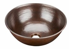 17" Round Hand-Hammered Antique Bathroom Copper Sink