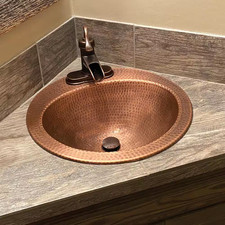 Oval Hand-Hammered Bathroom Copper Sink-18-1/2" x 13-1/2"