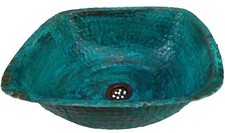 Antique Aged Oxidized Green Patina Copper Square Bathroom Sink Kitchen Remodel