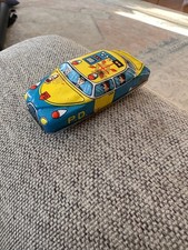 Vintage c 1950 Japanese Tin Litho Police Dept Toy Car Blue & Yellow