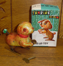 Vintage Japanese Tin Jumping Dog Wind Up Toy - Works - With Box