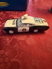 vintage Japanese tin friction police car, likely a 1960s Buick Riviera model