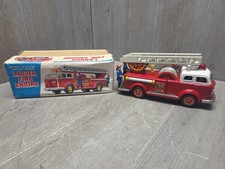 AMAZING VINTAGE TIN PLATE KOKYO JAPAN LADDER FIRE ENGINE B/O 60s BOXED (Works)