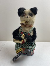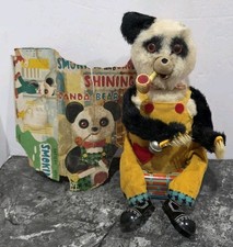 Vintage Battery-Operated Smoking/Shoe Shine Panda Bear Tin Toy Japan Alps as-is