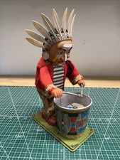 Vintage Battery Operated Brave Eagle Indian Chief Beating Drum Toy