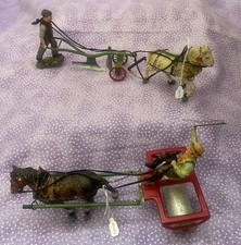 JoHillCo Antique Farmer with Horse & Plow, Man with Roller & Horse RARE- A0126