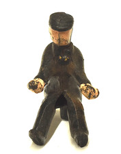 ANTIQUE CAST IRON TOY SEATED MALE FIGURE, PART, BLACK , MEASURES 3" INCHES