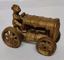 Vintage Arcade Gold Cast Iron Tractor w/ Driver Figure Toy