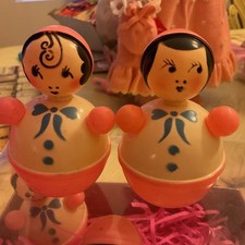 2 Antique Celluloid 1940s Baby roll Poly Rattles💛💛sweet Boy And Girl💛💛💛