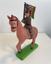 World War I Soldier On Horse Celluloid Toy American Flag Vintage Japan Vintage
