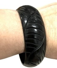 Antique 1920's-1930's Art Deco Carved Bakelite Black Bangle Bracelet 1" Wide