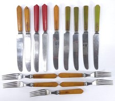 14 Antique Bakelite Handled Cutlery Knives and Forks Different Colors in Box