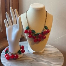 Antique Bakelite Cherry Necklace and Bracelet Set. Tested.