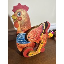 Vintage Wooden Pull Toy Chicken Farm Animal Classic Toy Decor no cord
