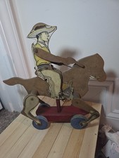 Rare Vintage Wooden Horse "Shootin Cowboy" Rolling Child's Pull Toy