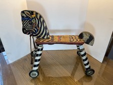 1950’s Vintage Ride On Wood Zebra Pull Toy