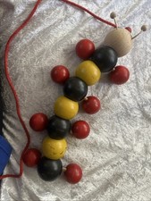 VTG Wooden Catapillar Pull Toy Yellow, Red And Black With Face