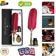 Antique Feather Quill Pen Set with Ink Seal Stamp Nibs Holder for Calligraphy