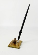 Antique Black and Gold Plated Desk Fountain Pen With Marble Holder Base USA