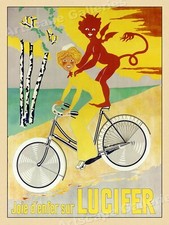1908 French Bicycle Advertising Poster Joie d'enfer sur Lucifer Cycle Tour 18x24