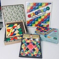 4 Vintage Brain Drain Colorado Mosaic Pattern Block Puzzle Lot Mattel Disc Toys