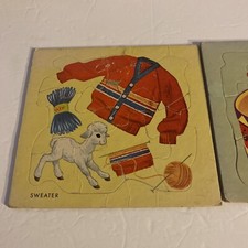 Vintage Cardboard Children’s Puzzles, Toy Drum, Sweater - 9 Pieces each