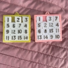 Lot Of 2 VTG 1950s 15 Number Sliding Puzzle Hand Held Game Toy Collectible