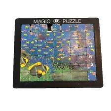 Vintage 1994 Magic Eye 3D Illusion Sliding Tile Puzzle Bunte Fische Pussycat Toy