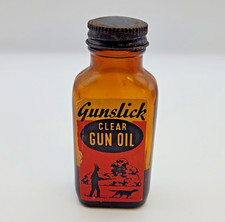 Vtg GUNSLICK Clear Gun Oil Bottle Hunting Advertising Great Graphics EMPTY