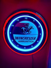 Winchester Ammunition Firearms Gun Store Advertising Neon Style LED Clock Sign