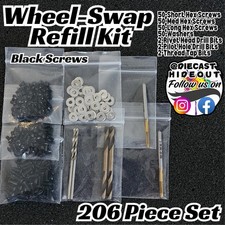206pc Wheel Swap Refill Kit Black Hex Screws for 1/64 Hot Wheels Matchbox