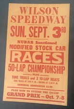 VINTAGE STOCK CAR RACING ADVERTISING POSTER *** WILSON SPEEDWAY *** NASCAR