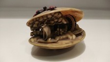 Antique Japanese Celluloid Kokeshi World in Clam Shell, Water Mill, 1940s
