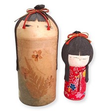 Japanese Kokeshi Doll Baby Rattle Bell Chime Toy 2pc Figure Musical Craft Art B2