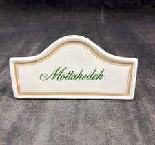 Mottahedeh Advertising Sign Green on White Gold Trim Accent Porcelain