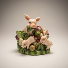 Vintage Fitz and Floyd Music Box French Market Pigs Farmer In The Dell Figurine